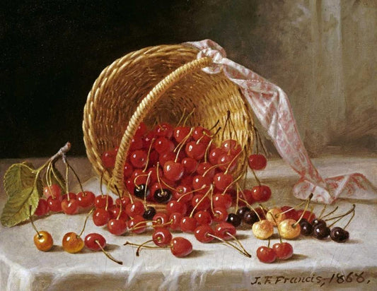 A Basket of Cherries Black Ornate Wood Framed Art Print with Double Matting by Francis, John F.