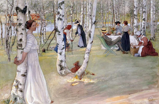 Under The Chestnut Tree Black Ornate Wood Framed Art Print with Double Matting by Larsson, Carl