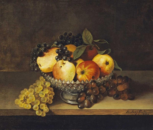 Still Life With Crystal Compote Black Ornate Wood Framed Art Print with Double Matting by Peale, Rubens