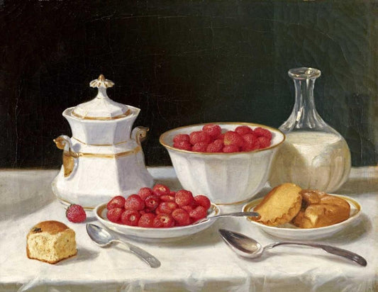 Still Life of Porcelain and Biscuits Black Ornate Wood Framed Art Print with Double Matting by Forster, George