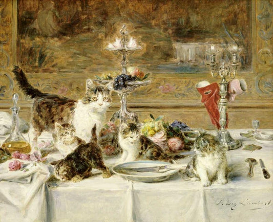 After Dinner Black Ornate Wood Framed Art Print with Double Matting by Lambert, Louis Eugene