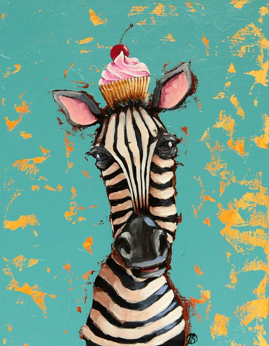 Zebra With Cherry Cupcake Black Ornate Wood Framed Art Print with Double Matting by Stewart, Lucia
