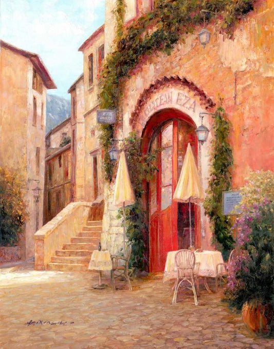 Eze Village Cafe France Black Ornate Wood Framed Art Print with Double Matting by Liu, Haixia