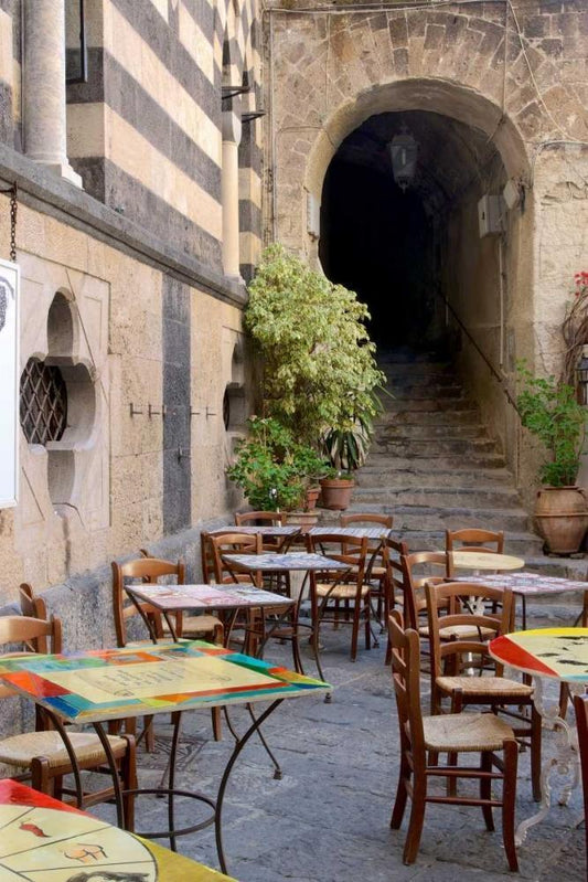 Caffe Amalfi Black Ornate Wood Framed Art Print with Double Matting by Blaustein, Alan