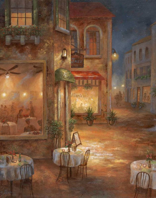 Corner Cafe Black Ornate Wood Framed Art Print with Double Matting by Nan