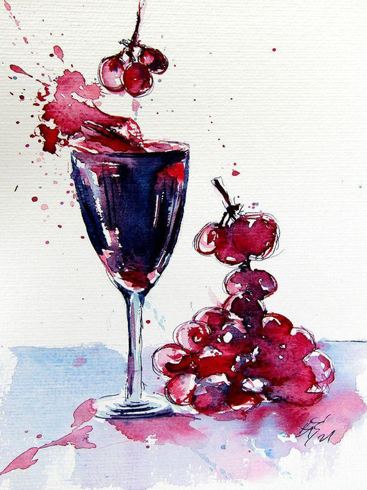 Wine and Grape White Modern Wood Framed Art Print with Double Matting by Kovacs, Anna Brigite
