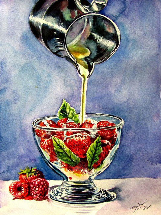 Still Life with Strawberries and Cream White Modern Wood Framed Art Print with Double Matting by Kovacs, Anna Brigite
