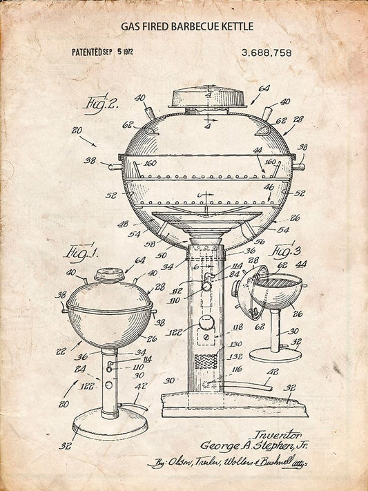 PP206-Vintage Parchment Webber Gas Grill 1972 Patent Poster Black Ornate Wood Framed Art Print with Double Matting by Borders, Cole