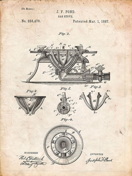 PP274-Vintage Parchment Gas Stove Range 1887 Patent Poster Black Ornate Wood Framed Art Print with Double Matting by Borders, Cole