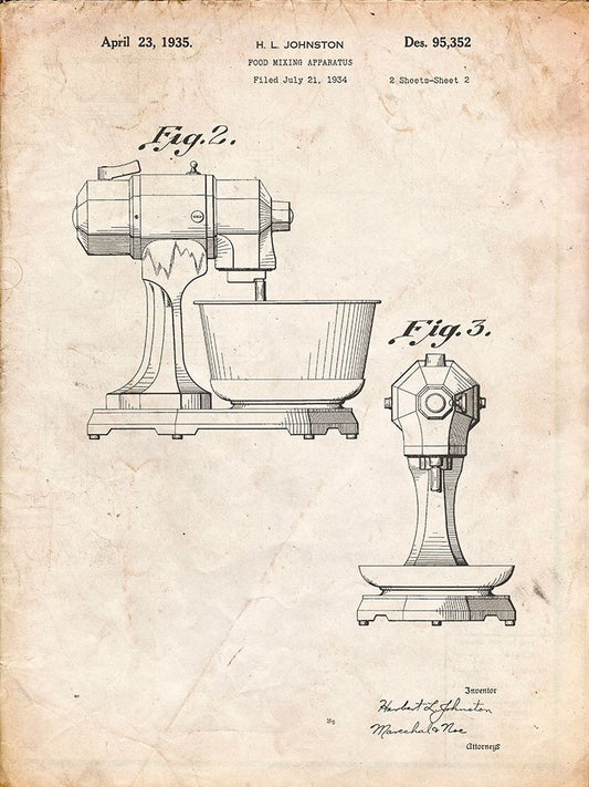 PP337-Faded Blueprint KitchenAid Mixer Patent Poster Black Ornate Wood Framed Art Print with Double Matting by Borders, Cole