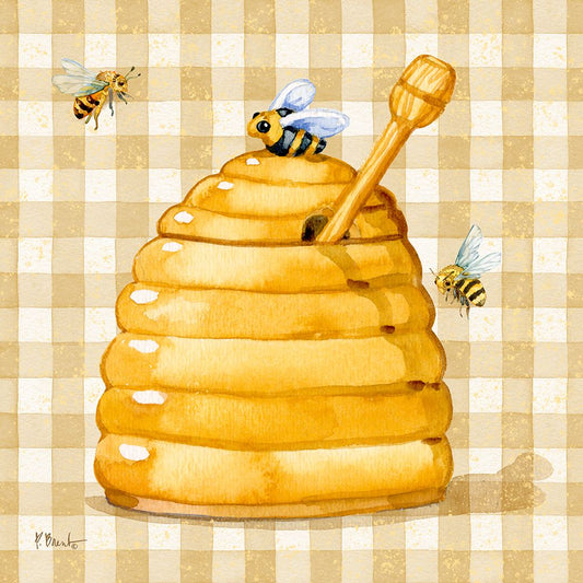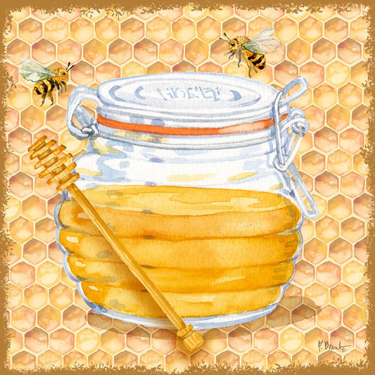Honey Pot Horizontal - Honeycomb Black Ornate Wood Framed Art Print with Double Matting by Brent, Paul
