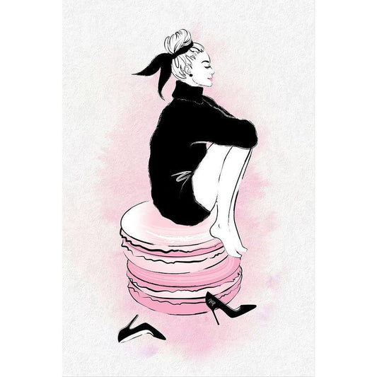Macaron Girl Black Modern Wood Framed Art Print with Double Matting by Pavlova, Martina