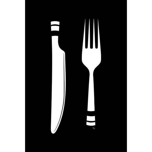 Fork Knife Black Modern Wood Framed Art Print with Double Matting by Pavlova, Martina