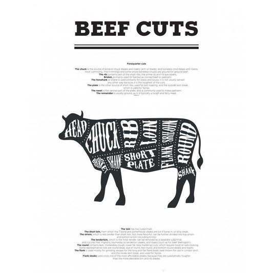 Beef Cuts Black Modern Wood Framed Art Print with Double Matting by Braun Studio