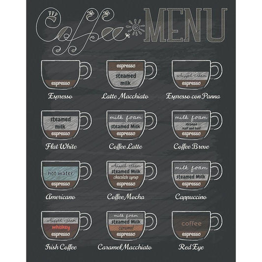 Coffee Menu Black Modern Wood Framed Art Print with Double Matting by Braun Studio