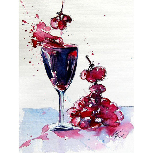 Wine and Grape Black Modern Wood Framed Art Print with Double Matting by Kovacs, Anna Brigite