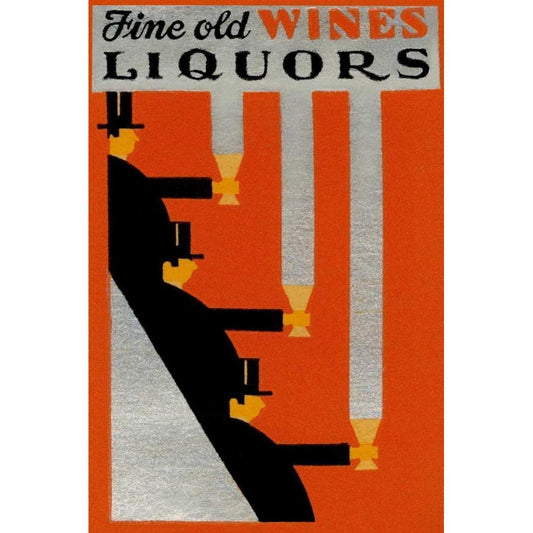 Fine Old Wines Liquors Black Modern Wood Framed Art Print with Double Matting by Vintage Booze Labels