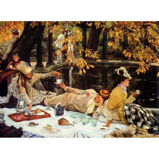 The Picnic Black Modern Wood Framed Art Print with Double Matting by Tissot, James Jacques
