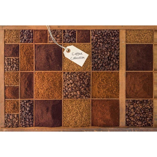Variety of coffee beans in a wooden box Black Modern Wood Framed Art Print with Double Matting by Frank, Assaf