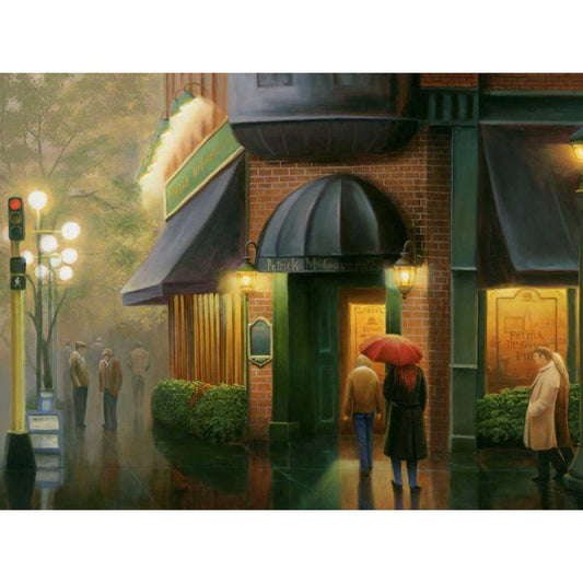 Rainy Day Pub Black Modern Wood Framed Art Print with Double Matting by Stans, Leo