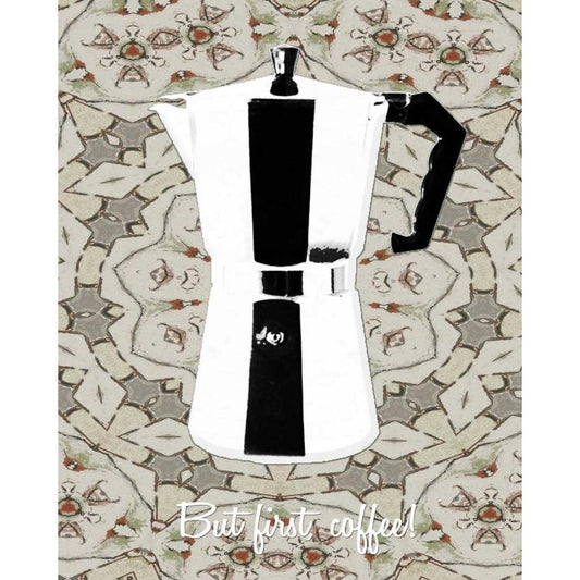 But first coffee I Black Modern Wood Framed Art Print with Double Matting by Waltz, Anne