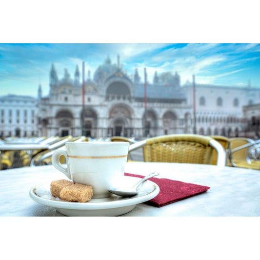 Caffe Piazza San Marco #1 Black Modern Wood Framed Art Print with Double Matting by Blaustein, Alan