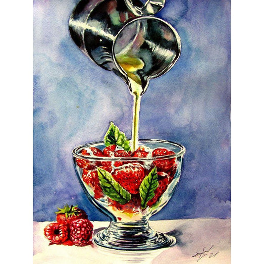 Still Life with Strawberries and Cream White Modern Wood Framed Art Print by Kovacs, Anna Brigite