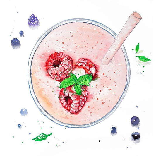 STRAWBERRY and RASPBERRY SMOOTHIE White Modern Wood Framed Art Print by Atelier B Art Studio