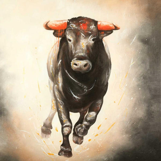 Bull to Attack White Modern Wood Framed Art Print by Atelier B Art Studio