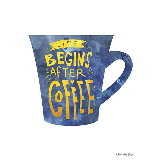 Life Begins After Coffee White Modern Wood Framed Art Print by Seven Trees Design