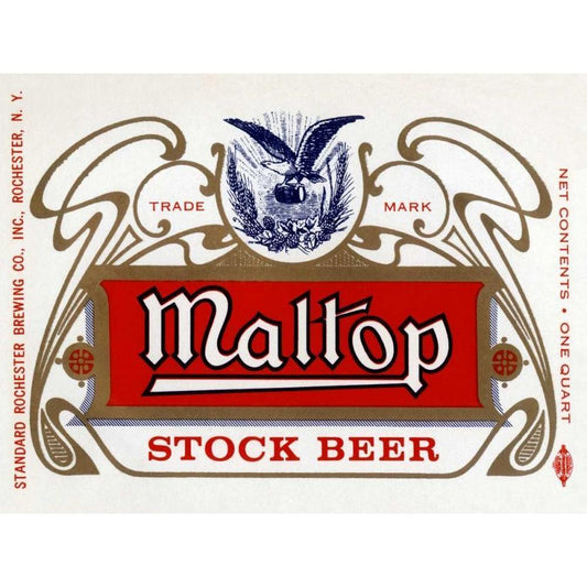Maltop Stock Beer White Modern Wood Framed Art Print by Vintage Booze Labels