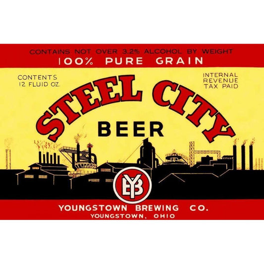 Steel City Beer White Modern Wood Framed Art Print by Vintage Booze Labels