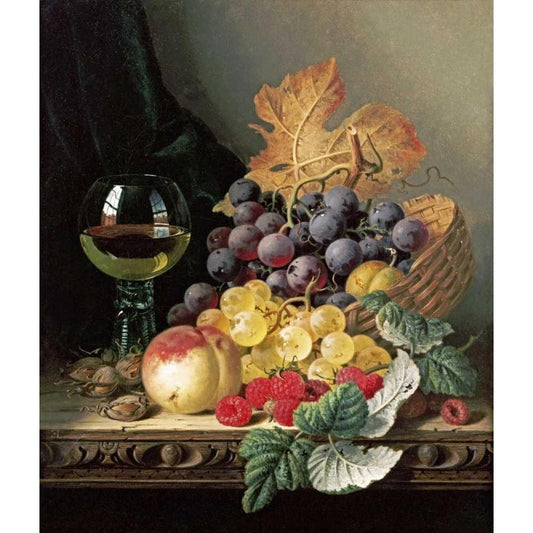 A Basket of Grapes, Raspberries White Modern Wood Framed Art Print by Ladell, Edward