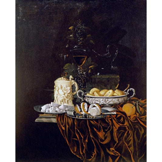 Pastry In a Silver Dish, Sweetmeats On a Plate White Modern Wood Framed Art Print by Hinz, Johann Georg