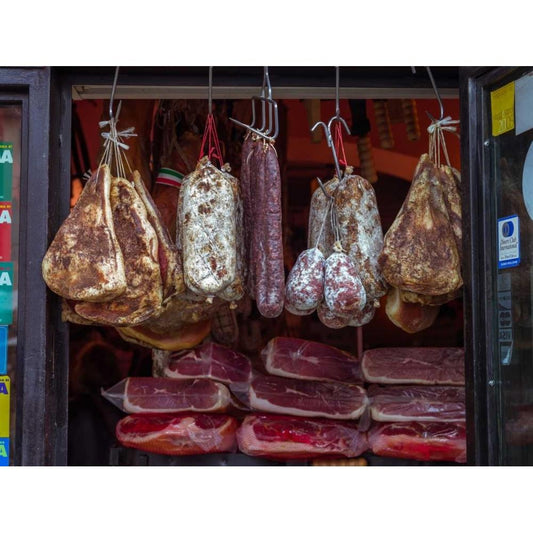 Butcher Shop in Rome, Italy White Modern Wood Framed Art Print by Frank, Assaf