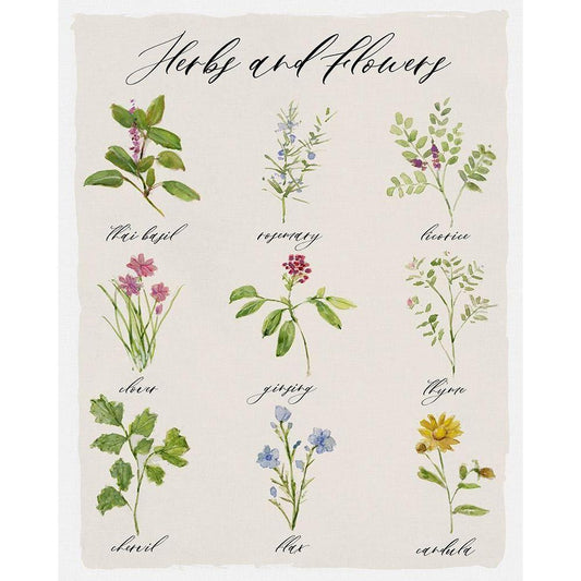 Herbs and Flowers White Modern Wood Framed Art Print by Swatland, Sally