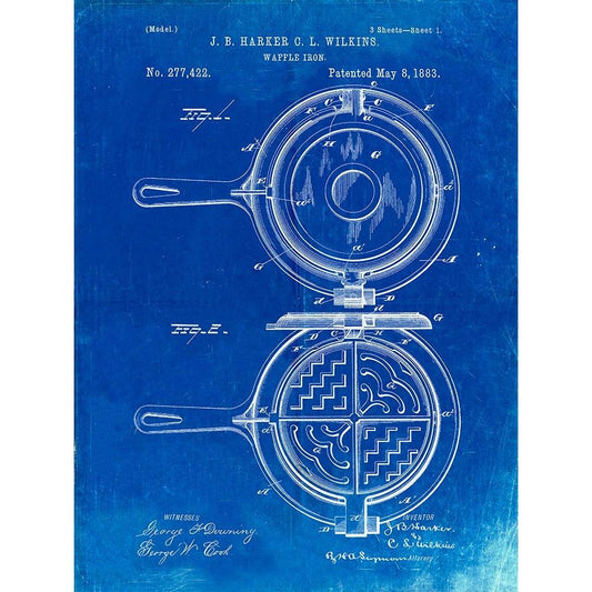 PP209-Faded Blueprint Waffle Iron Patent Poster White Modern Wood Framed Art Print by Borders, Cole