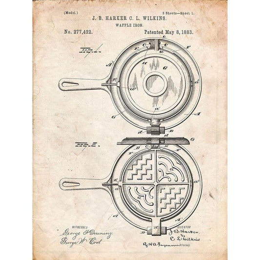 PP209-Vintage Parchment Waffle Iron Patent Poster White Modern Wood Framed Art Print by Borders, Cole