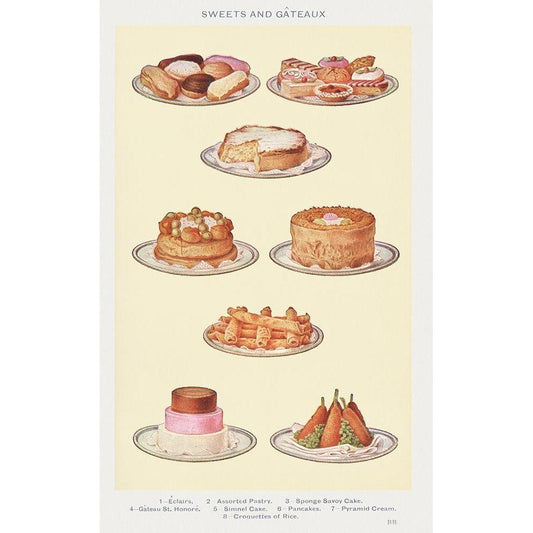 Sweets and Gâteaux Gold Ornate Wood Framed Art Print with Double Matting by Mrs. Beeton''s Book of Household Management