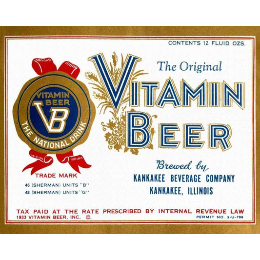 Vitamin Beer Gold Ornate Wood Framed Art Print with Double Matting by Vintage Booze Labels
