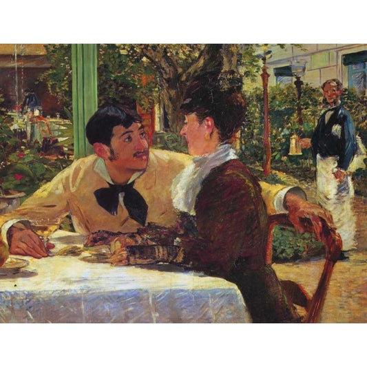 Couple at Pere Lathuille Gold Ornate Wood Framed Art Print with Double Matting by Manet, Edouard