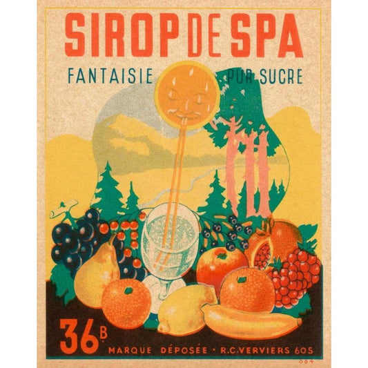 Sirop de Spa Gold Ornate Wood Framed Art Print with Double Matting by Vintage Booze Labels