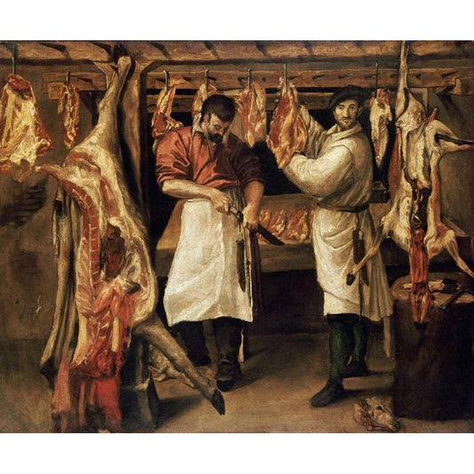 The Butchers Shop Gold Ornate Wood Framed Art Print with Double Matting by Carracci, Annibale