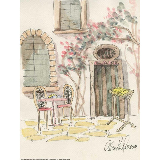 Sidewalk Cafe Gold Ornate Wood Framed Art Print with Double Matting by Paul, Alan