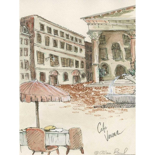Cafe Verona Gold Ornate Wood Framed Art Print with Double Matting by Paul, Alan