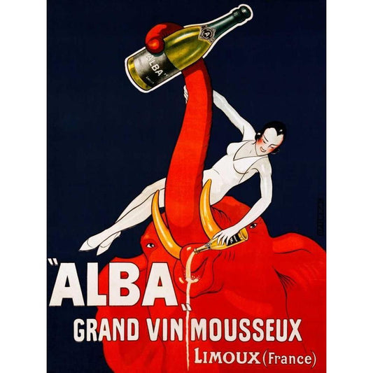 “Alba†Grand Vin Mousseux ca. 1928 Gold Ornate Wood Framed Art Print with Double Matting by Andre