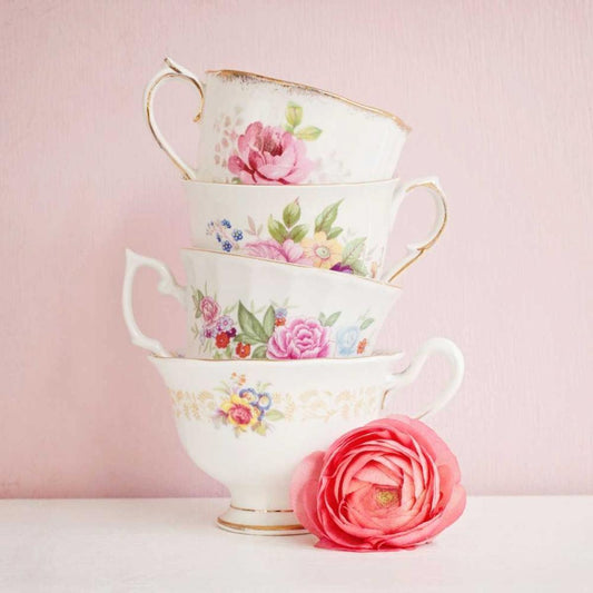 Tea Cup Posies White Modern Wood Framed Art Print with Double Matting by Susannah Tucker Photography