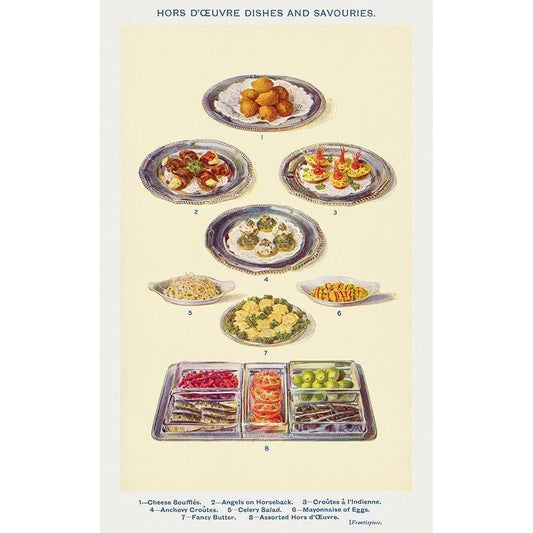 Hors doeuvres dishes and savouries Black Modern Wood Framed Art Print by Mrs. Beeton''s Book of Household Management