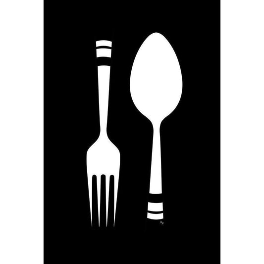 Fork Spoon Black Modern Wood Framed Art Print by Pavlova, Martina