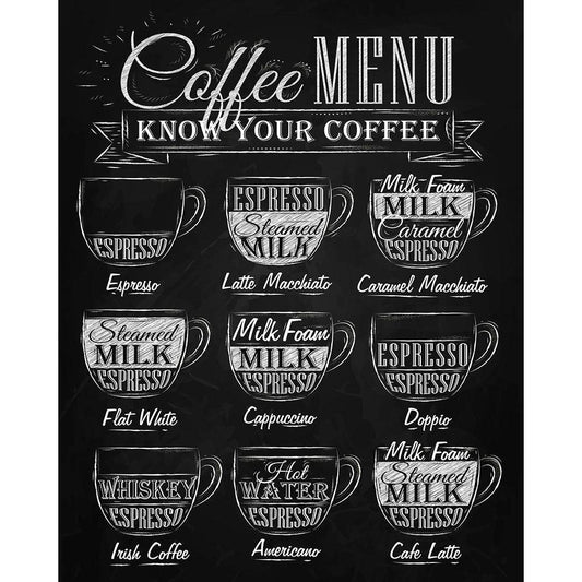 Coffee Menu Black Modern Wood Framed Art Print by Braun Studio